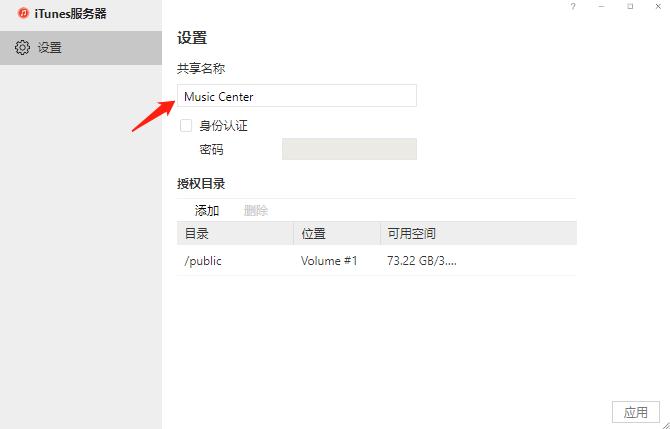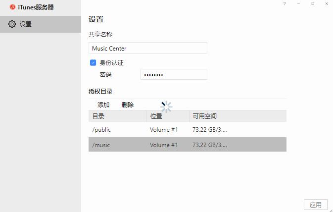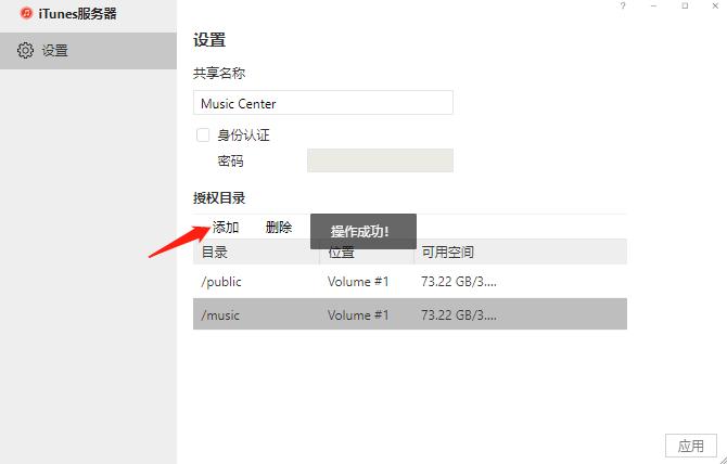 4.添加iTunes服务器的共享目录。只有存放在共享目录中的内容才能共享给iTunes客户端;
