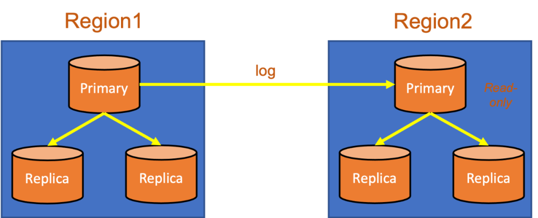 跨Region一般是以灾备实例的形态存在。备Region的Primary节点一般会设置为只读。在Region1出现异常的情况下,为了保证数据的一致性,需要人工决策是否切换,所以一般也不会自动切,而是选择手动切换。