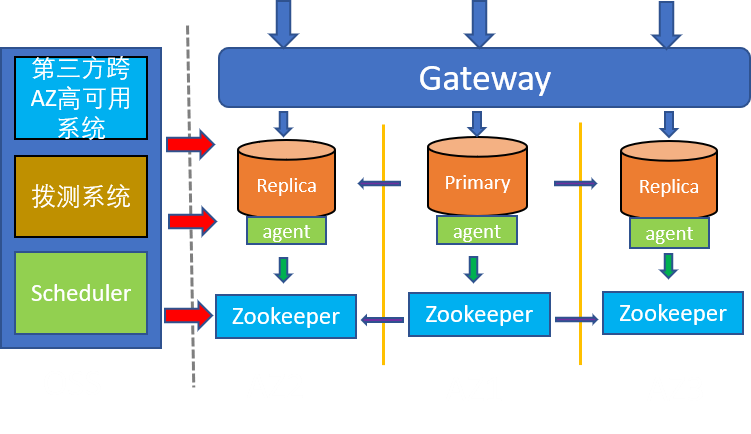 ● 通过心跳上报给Scheduler,Scheduler根据实例状态做出不同的故障决策,确定是否需要发起切换,以及是可用区内的切换还是跨可用区的切换。