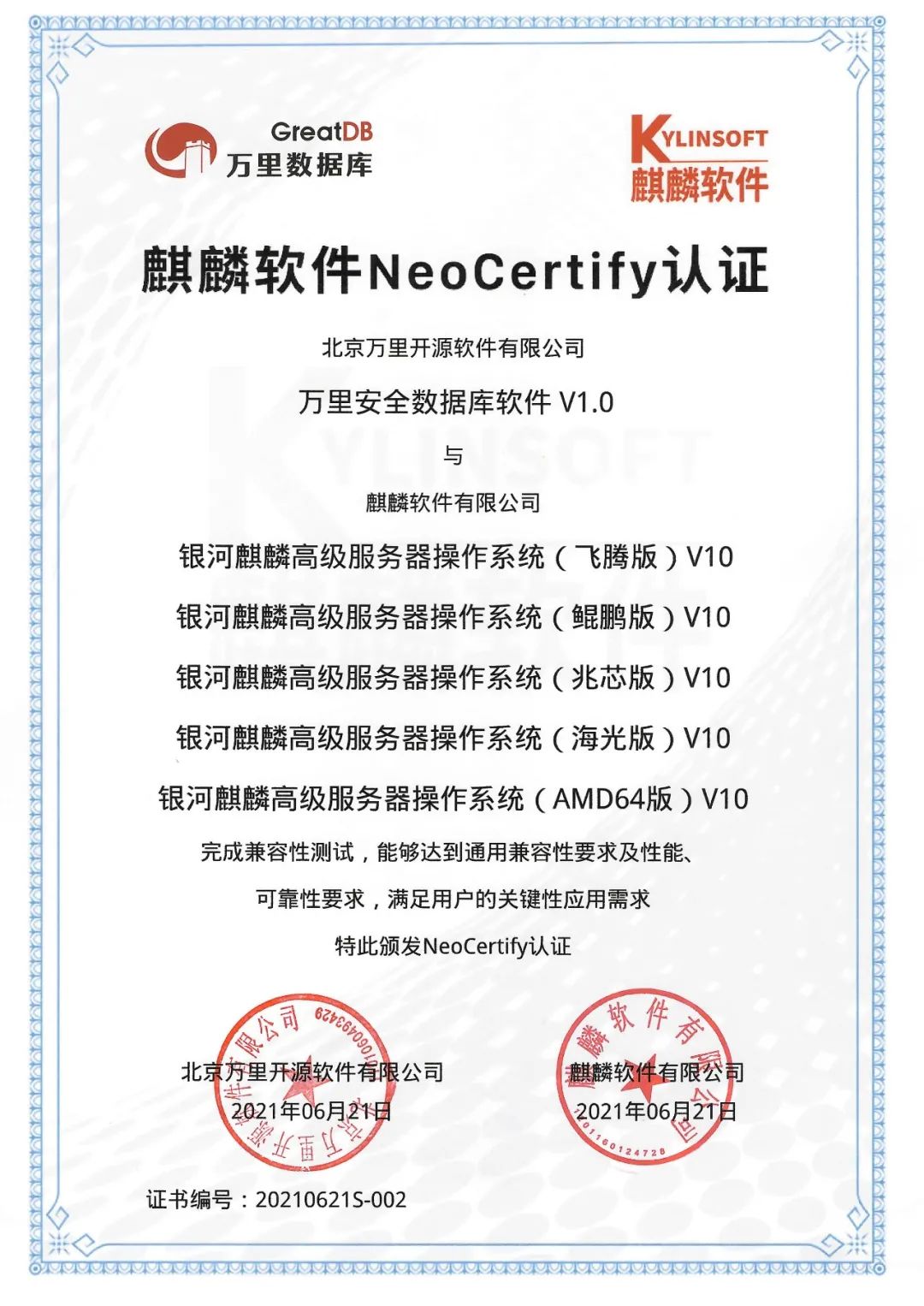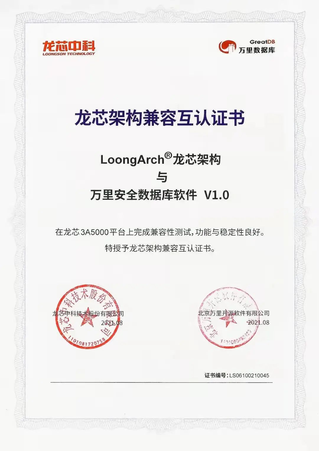 过去的2021全年,万里数据库累计完成了产品兼容认证近百次,完成了华为鲲鹏Validated认证,与龙芯、飞腾、海光、申威、兆芯、鲲鹏、麒麟、统信等业内主流生态厂商完成了最新的芯片、操作系统型号的产品兼容适配,为推动生态伙伴进一步的业务合作奠定技术基础。