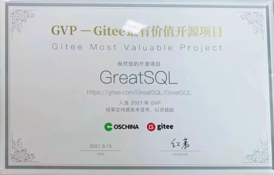 ● Gitee最有价值开源项目认证证书