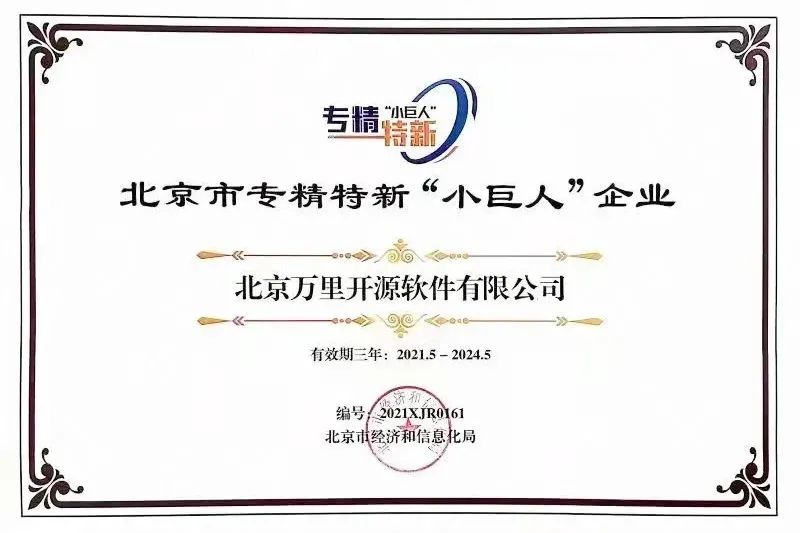 公司荣获北京市专精特新小巨人企业,获丰科园创新十二条专项支持资金,获得IT168技术卓越奖,能源企业信息化方案案例创新奖、互联网经济论坛2021数据库最佳创新产品奖、合作伙伴联通沃音乐的十大创新技术类合作伙伴奖。
