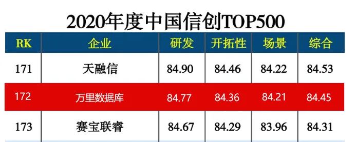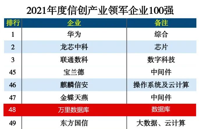 对外影响力上,万里数据库因信创领域的突出贡献,入选2021信创产业领军企业100强,《2021信创产业发展报告》和2020年度中国信创TOP500,行业实力受到权威机构认可。