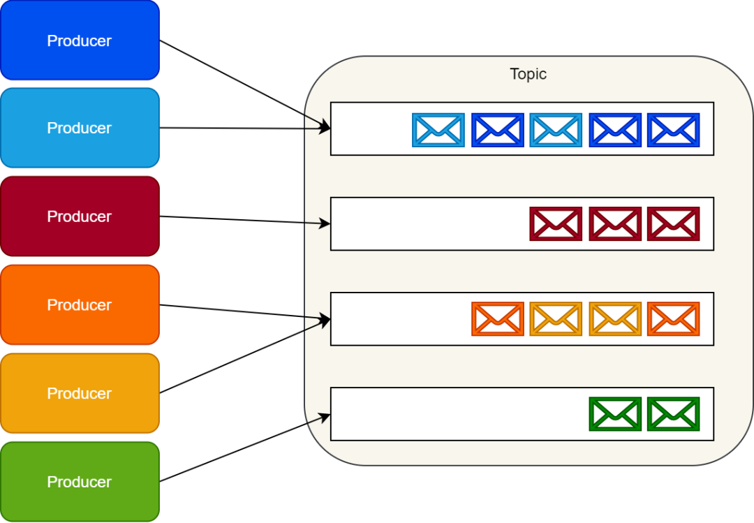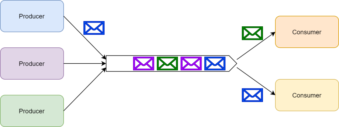 利用消息队列可以解耦生产者和消费者。多个生产者可以向同一个消息队列发送消息。