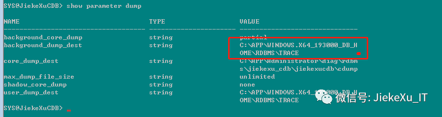 哦这里说一句,怎么查 alert 日志有很多小伙伴们不熟悉数据库便不知道日志位置,那么怎么查呢,登陆数据库查看 dump 参数指定的位置就是告警日志咯!