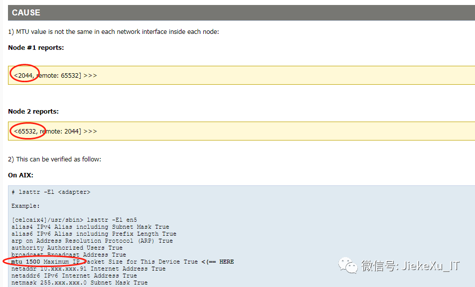 AIX 操作系统因 MTU 不一致导致主机和 RAC 数据库不断重启,事件就是发生在上周日。操作系统工程师因监控发现有一台主机不断重启,排查硬件后无问题,便将事件转至数据库工程师排查了。当时我接到的这个主机是一套不太重要的 SVC 存储复制的灾备环境,基本上没有业务使用,所以也就比较从容,慢慢排查问题。RAC 数据库是 11.2.0.4 版本的,操作系统是 AIX 7.1 版本,如下图: