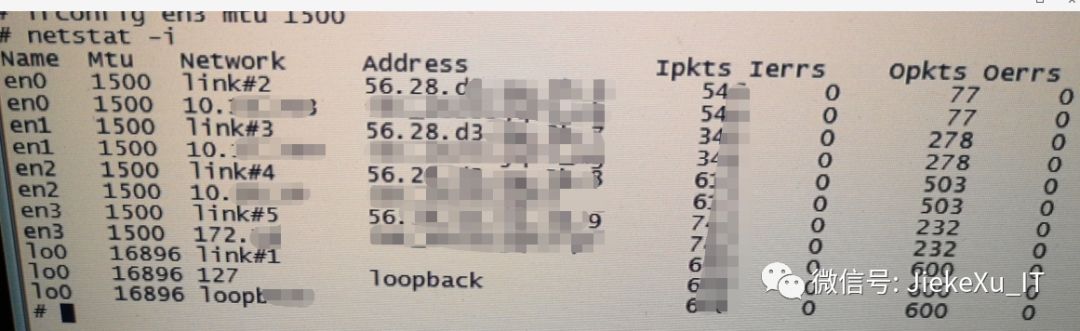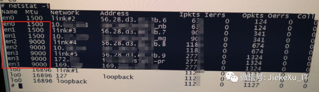 当查看主机二的 MTU 时便惊奇的发现居然是 9000 ,而节点一均是 1500.这个就需要修改了,MTU 参数修改需要重启才会永久生效。所以需要把 en2 和 en3 改成 1500 才行。 其他类型的系统查看如下: