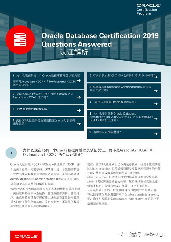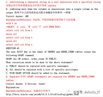 那么到这里该划重点敲黑板了,要考的哦!考试当然需要复习资料了,这里整理了 12c OCP 19 年考试的大部分题目,搜集、整理、解析出的答案,正确率很高哦,据说之前翻译、整理的 11g OCP 题库有培训机构拿去给他们的学员作为考前资料分享,既高兴又生气,整理的学习资料居然为培训机构做嫁衣,本次分享的均为带标签 PDF 版本的,仅供小伙们学习使用,不可商用,公众号后台【JiekeXu之路】ID 为 【JiekeXu_IT】回复关键字【12c OCP】获取,为防止输入错误关键词建议复制到公众号后台哦,更有最新题库限时 7 天免费领取,注意过期不候哦。
