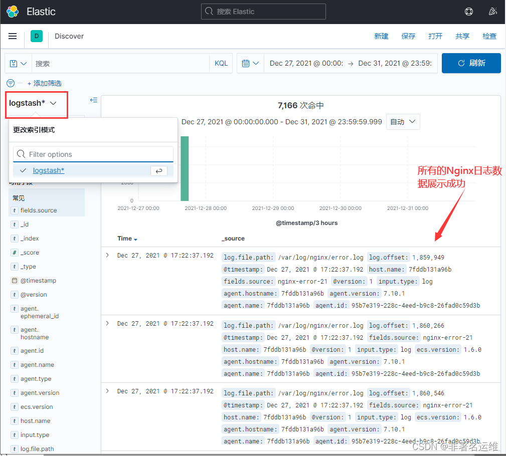 logstash | "path" => "/var/log/nginx/error.log" #可以看到采集的日志为error.log