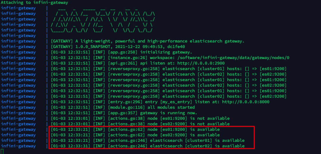 查看网关日志可以看到集群 cluster01 恢复的信息。