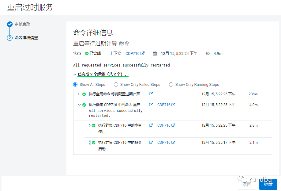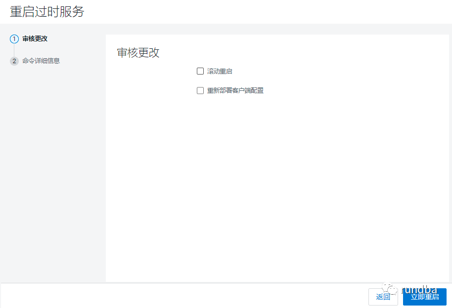 如果不允许停止业务,默认使用“滚动重启”。在业务允许停止时,建议去掉“滚动重启”对勾,点击立即重启。
