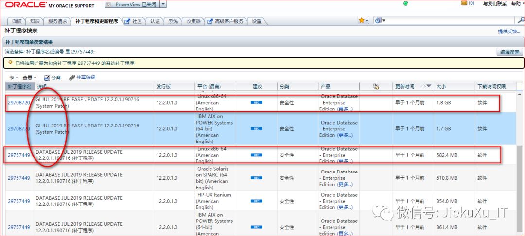 Oracle每个季度都会更新补丁集,每年的 1 、4、7、10 月中旬均会更新,不过有些补丁不会提供下载,需要再次单独购买才行。此补丁还算幸运,可以下载,如下: