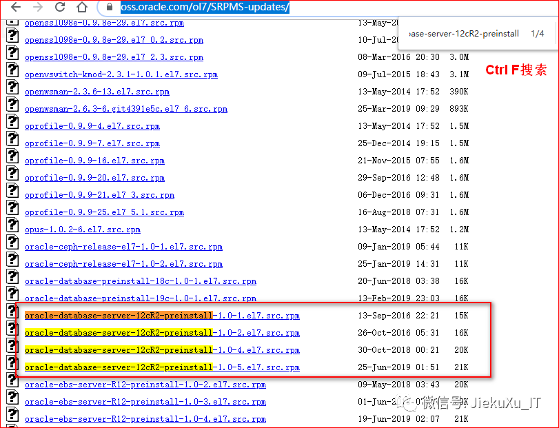 前面已经说过配置 YUM 源的方法了,可查看前一节进行配置,然后安装一下 rpm 包。如果你使用的是 Oracle Linux 7 那么可以去此网址下载 这么一个 oracle-database-server-12cR2-preinstall 包即可。
