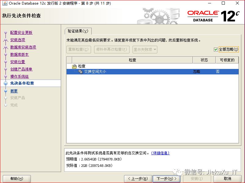 当出现交换空间不足时,需要重新设置 swap 大小,生产环境不建议忽略,设置 swap 也很简单,如下步骤: