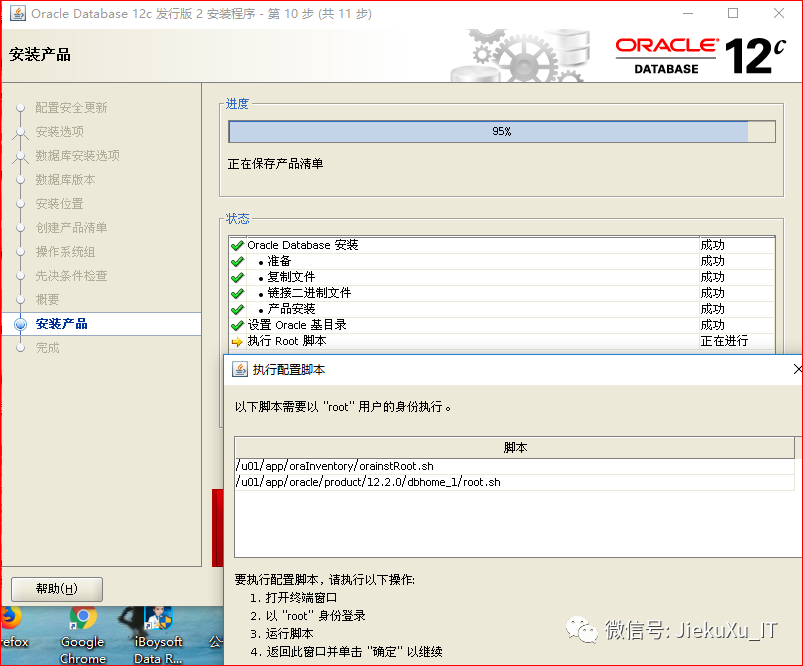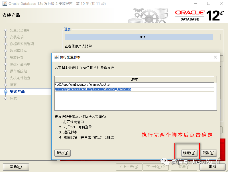 当进度条大于到 95 % 时,出现如下界面,需要使用 root 执行出现的脚本。