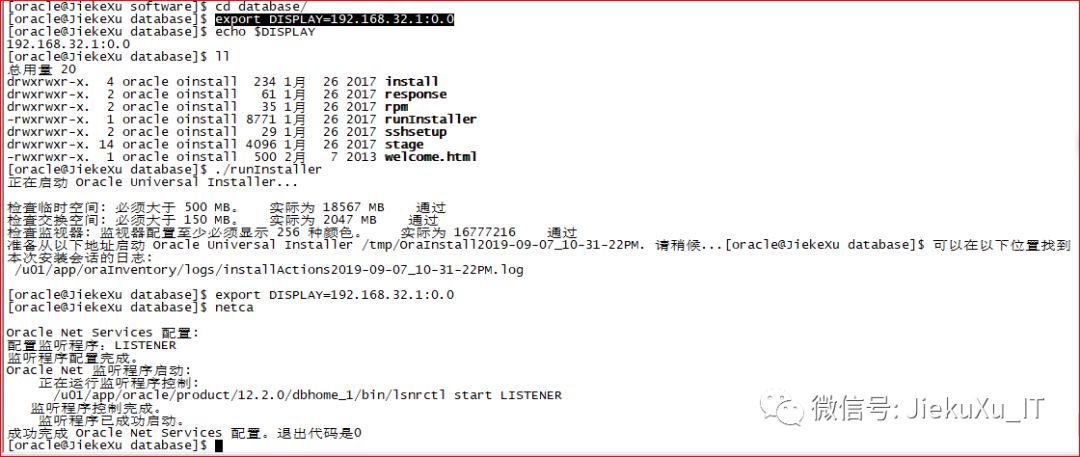 [oracle@JiekeXu database]$ export DISPLAY=192.168.32.1:0.0[oracle@JiekeXu database]$ netca