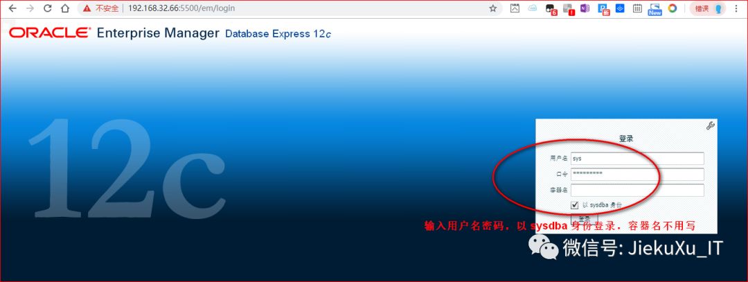 打开宿主机浏览器输入 https://IP:5500/em/login