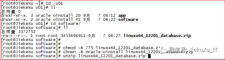 mkdir -p u01/app/oracle #创建oracle安装目录chown -R oracle:oinstall u01/app/oracle #分配属组属主chmod -R 755 u01/app/oracle/ #分配权限