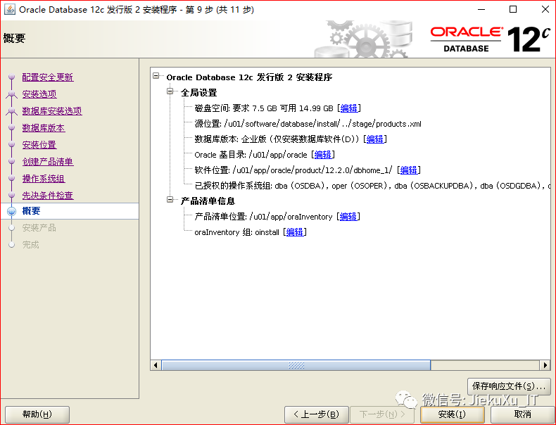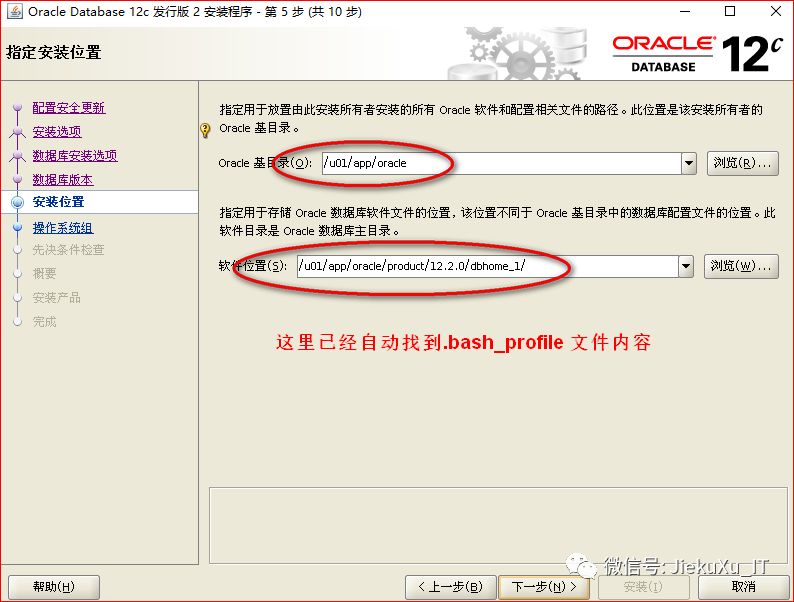 vim home/oracle/.bash_profile #oracle用户环境配置umask 022 #反掩码ORACLE_BASE=/u01/app/oracle #oracle的基本目录ORACLE_HOME=/u01/app/oracle/product/12.2.0/dbhome_1/ #oracle的家目录ORACLE_SID=JiekeXu #实例名称NLS_LANG="SIMPLIFIED CHINESE_CHINA".UTF8 # 设置语言为中文PATH=$PATH:$HOME/.local/bin:$HOME/bin:$ORACLE_HOME/bin #设置系统环境LANG=zh_CN.UTF-8export PATH LANG NLS_LANG ORACLE_BASE ORACLE_HOME ORACLE_SID #使环境生效