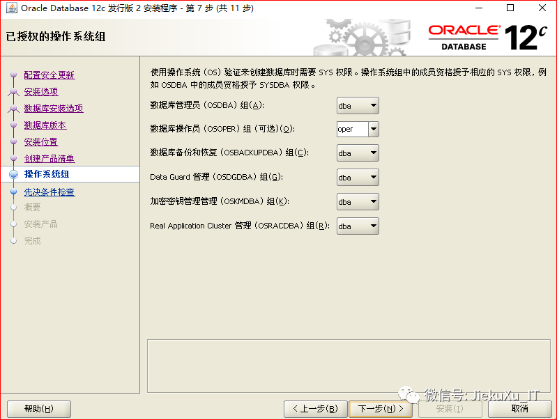 groupadd oinstall #创建基本组 oinstallgroupadd dba #创建附加组 dbagroupadd oper #创建附加组 operuseradd -g oinstall -G dba,oper oracle #创建 用户echo 'Oracle12c' | passwd --stdin oracle #配置密码