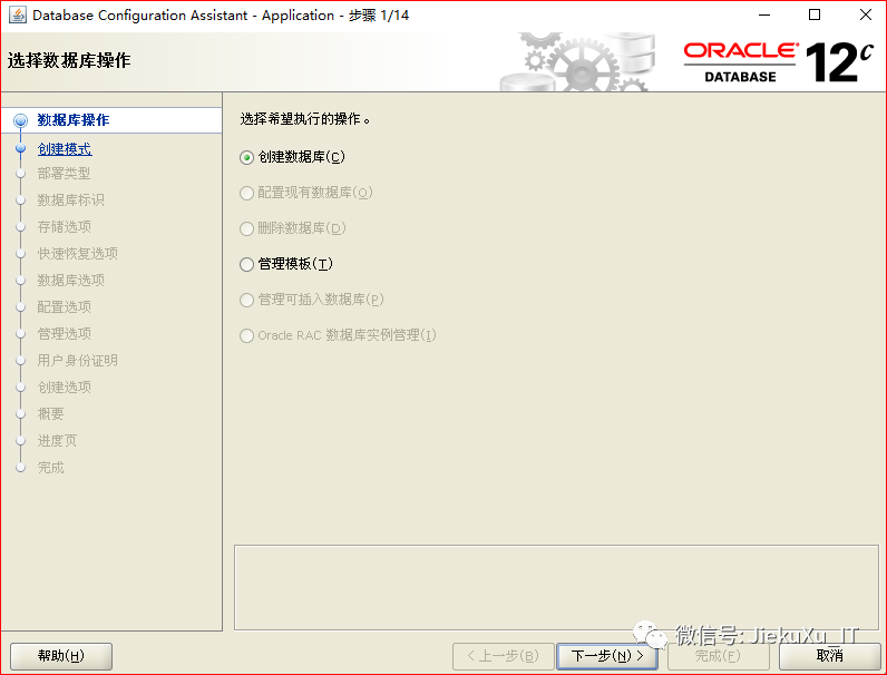 [oracle@JiekeXu database]$ export DISPLAY=192.168.32.1:0.0[oracle@JiekeXu database]$ dbca