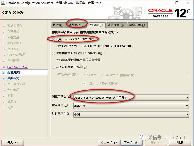 调整大小里面默认连接数300不变,字符集如下默认即可。
