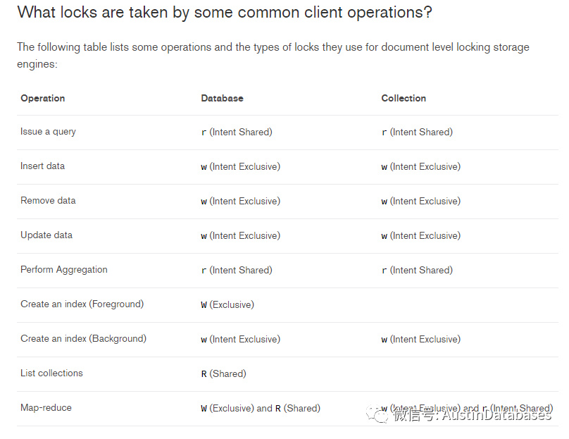 其中 list collections 的锁的粒度是 Read 共享锁,以下的三个命令都属于list collections 的范畴,执行这个命令时会引起数据库运行中的与 X锁的冲突,造成数据库运行中的卡顿。原文https://mongoing.com/archives/26201