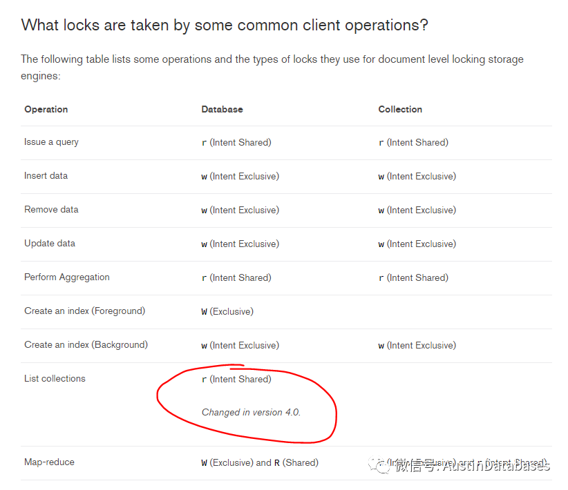 4.0后的MONGODB 更改了list collections 的锁的粒度