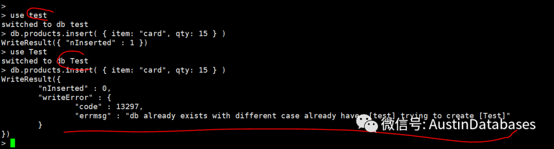8 数据库中MOGNODB 的名字是大小写敏感的,但如果仅仅是通过大小写来产生同名的数据库是不被允许的