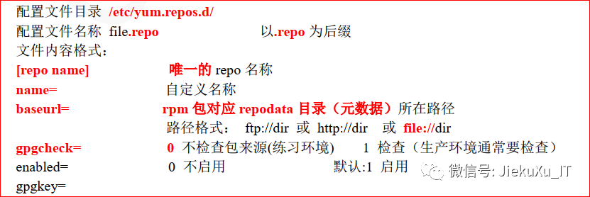 [root@JiekeXu yum.repos.d]# cp rhel-source.repo rhel-source.repo.bak[root@JiekeXu yum.repos.d]# vi rhel-source.repo[rhel64]name=rhel64 repobaseurl=file:///mnt/dvd/Servergpgcheck=0[root@JiekeXu yum.repos.d]# tail -5 rhel-source.repo