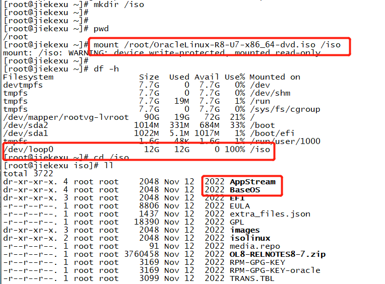 # mount /root/OracleLinux-R8-U7-x86_64-dvd.iso /iso