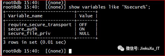 查看 secure_file_priv 的值,默认为 NULL,表示限制不能导入导出。