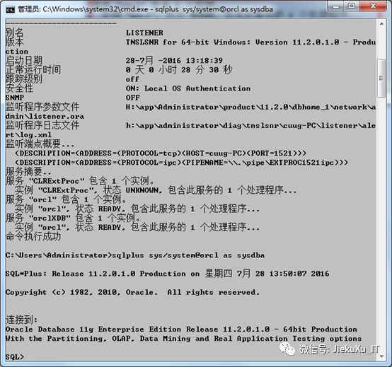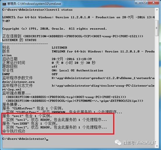 “cmd”下键入,lsnrctl status