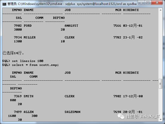 SQL> select * from scott.emp; #有内容整个安装就应该可以了