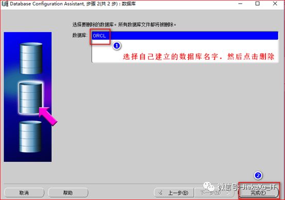 当出现如上图时直接选择“下一步”,选择删除数据库。