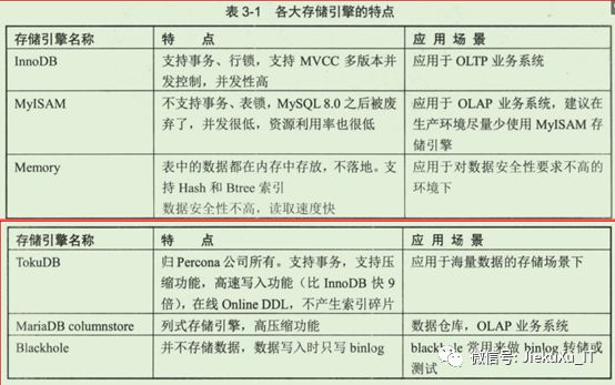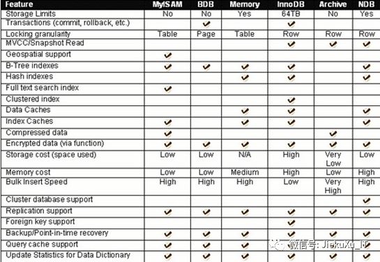 下表是各大存储引擎特点与应用场景的比较。
