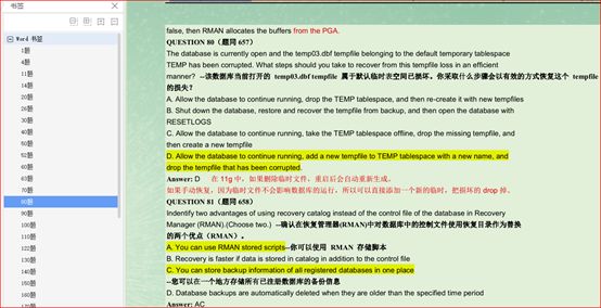 因个人也是去年4月份备考5月考完的051、052,对于新增的071没有了解,当时051题库175道题(V9.02版本),052题库188道题(V8.02版本),认真做完这363题即可完美通关或者背完这些也不在话下,理解记忆即可获得OCA证书,但近期因题库改变,这些只能作为参考备考的资料。部分题库见下图,翻译及答案解析可供参考备考最新的071和052,想获取此题库,公众号后台回复【OCP】细聊。