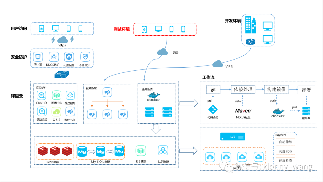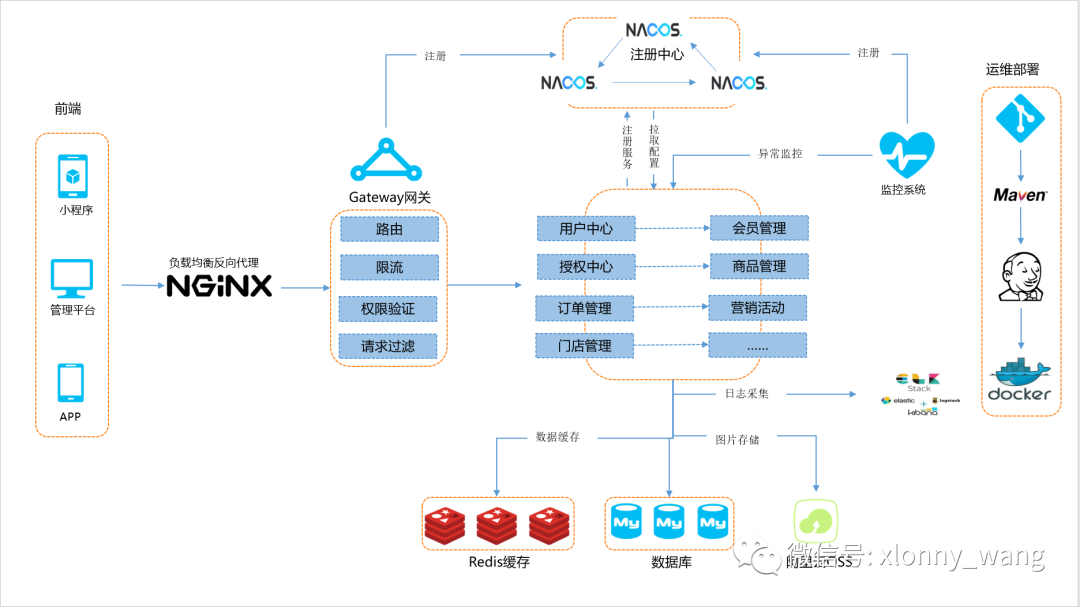 开发部分既然是基于微服务框架开发的,那么对于注册中心\配置中心,相比Eureka,个人觉得Alibaba的Nacos比较适合国内的开发。监控部分视系统复杂程度选择开源组件即可。数据库和缓存也可以选择基于云服务的一些服务商即可,对于中小型企业并无必要一定要自己建设机房做什么数据同步。最近看了一些企业招聘提到ELK,其实这个东西的应用不常见,能用到这个的,企业必须要有一个专业的运维团队来关注系统运行状态。那么基于以上,我们的开发者就只需要关注的是自己的业务模块即可。