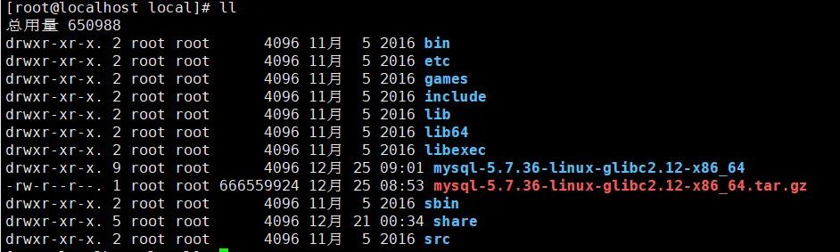 [root@localhost local]# tar -zxvf mysql-5.7.36-linux-glibc2.12-x86_64.tar.gz
