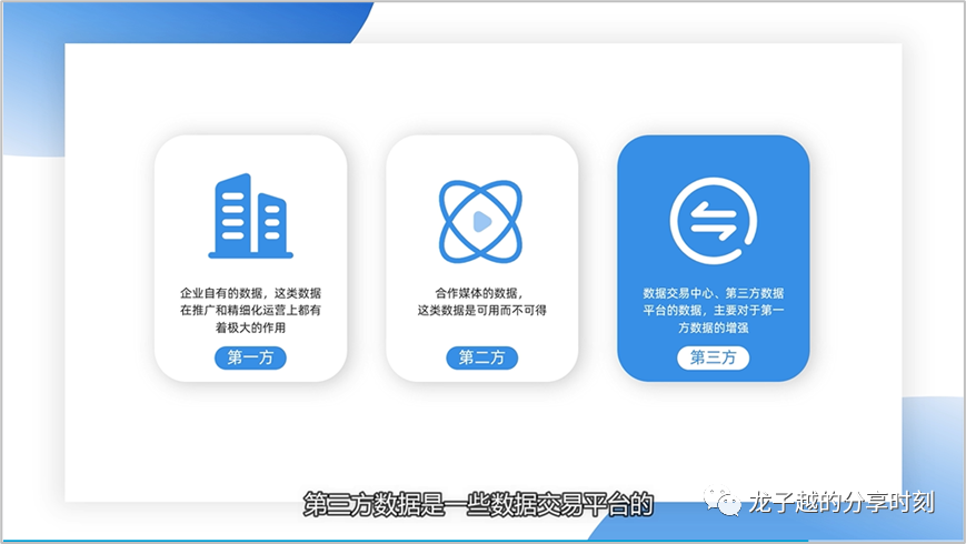 第三方数据是一些数据交易平台的,比如上海数据交易中心、talking data、 个推等等,他们在收到数据以后再把这些数据进行重新包装,然后给广告主使用,这是一种可用而不可得的数据。