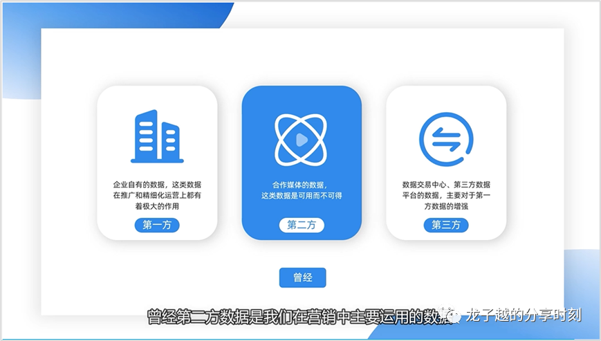 简单来说第一方数据主要是指企业自有的数据,这些数据在推广和精细化运营上都有着极大的作用。第二方数据是指合作媒体的数据,这个数据可用而不可得。第三方数据是指数据交易平台的数据,主要是对于第一方数据的增强。