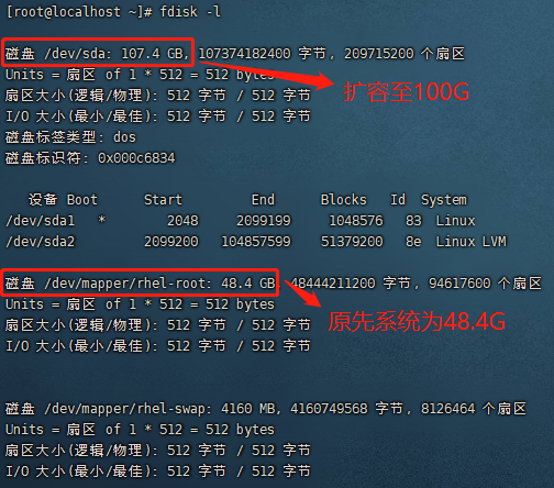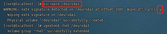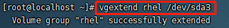 扩展VG 把物理卷添加到VG里面(rhel为之前已经存在的VG)