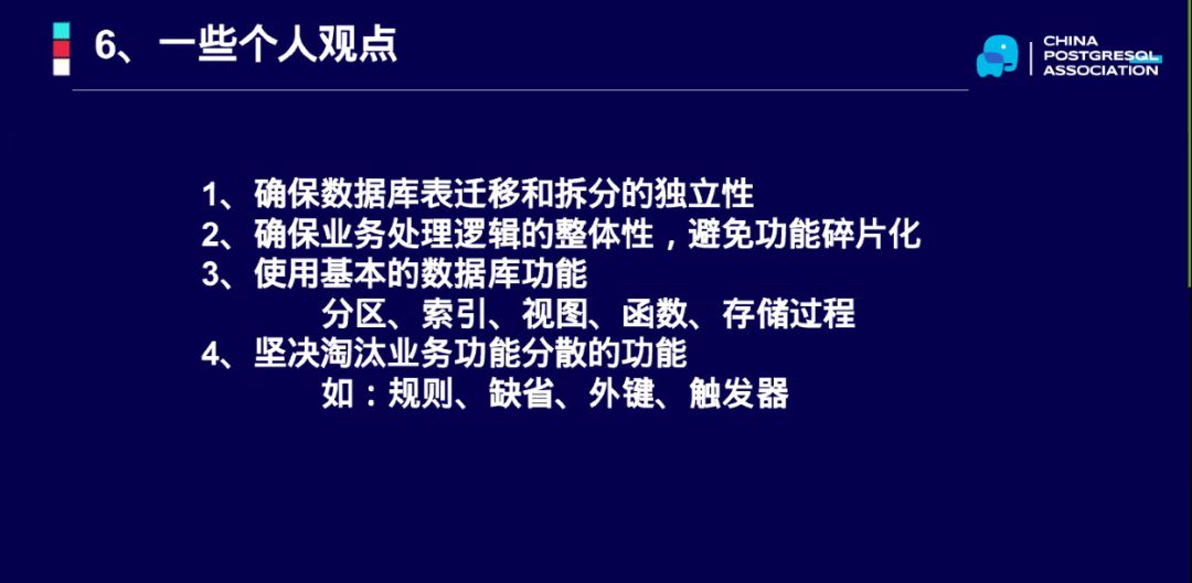 王斌老师拥有三十余年的IT从业经验。本次沙龙,他向大家分享了表全名和top的移植、API移植等技术要点;基于自己的从业经历,在简单化系统设计、存储过程的使用、核心商业逻辑的实现、数据库功能使用等方面的一些观点;以及自己在PG方面的工作计划。