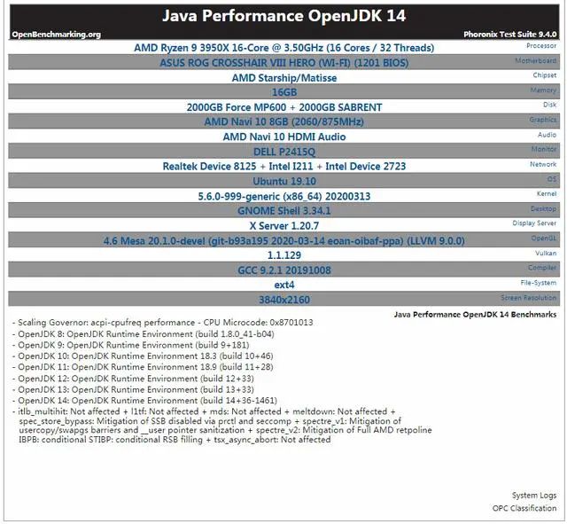 通过使用 Phoronix 的测试套件,测试内容包含从 SPECjbb 到 Java 2D 工作负载。
