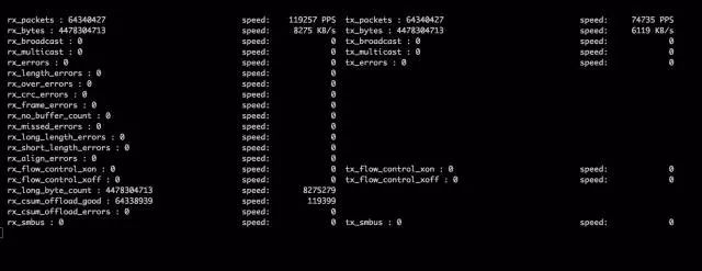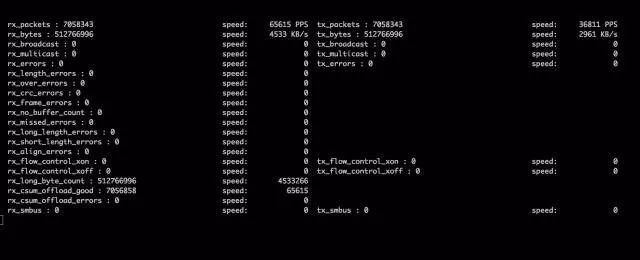 为此,我利用 Python 脚本结合 ethtool 工具编写了一个简单的工具,通过它我们可以直观地监视到网络的数据包通过情况如何。它可以客观地显示出我们的网络有如此多的数据传输在发生。