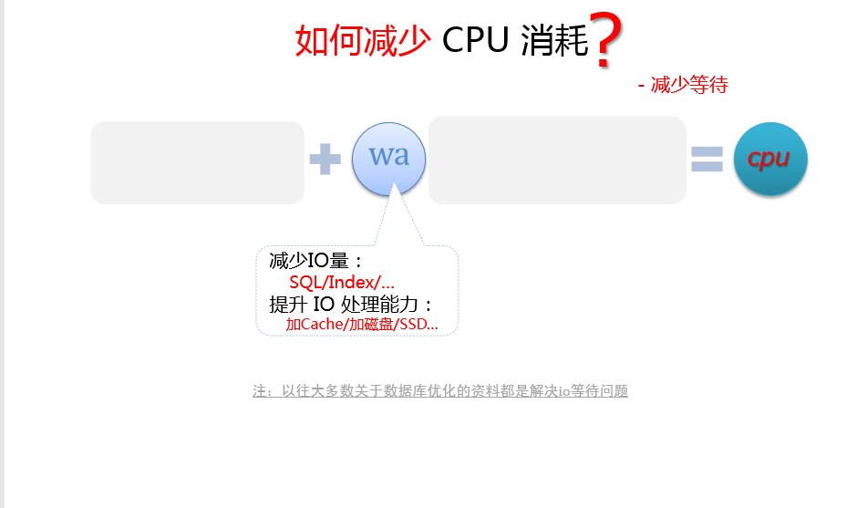 如将很少使用的大字段拆分到独立表,非常频繁的小字段冗余到“引用表”SQL,调整SQL写法,充分利用现有索引,避免不必要的扫描,排序及其他操作