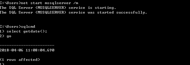 C:\Windows\system32>net start mssqlserver /m"SQLCMD"