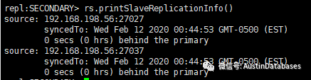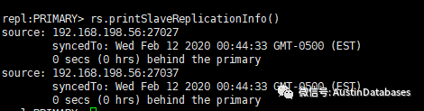 所以这里建议的是,在主库运行rs.printSlaveReplicationinfo命令。