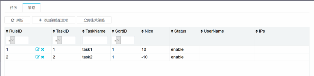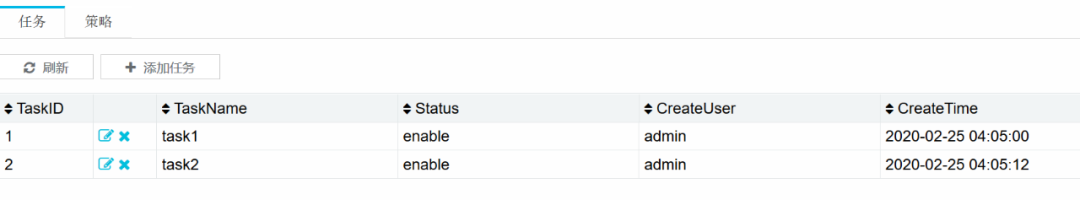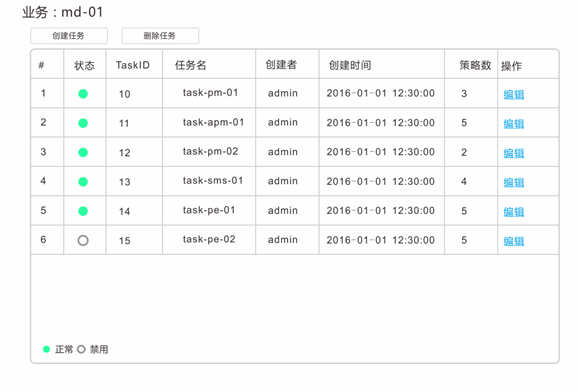 通过该页面,还可新增或删除任务配置。点击编辑将打开指定任务的策略规则配置页面(见下节)。