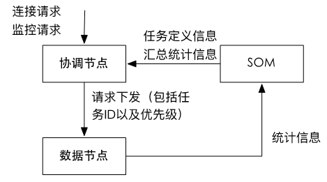 同时,SAC会根据自身存放的策略信息,每次用户对当前会话设置完任务ID后,协调节点将会在其后所有的操作指定该任务所对应的优先权。该优先权信息会被下发到底层的数据节点执行,同时统计信息会被汇总到每个任务ID下,由OM定期收集。